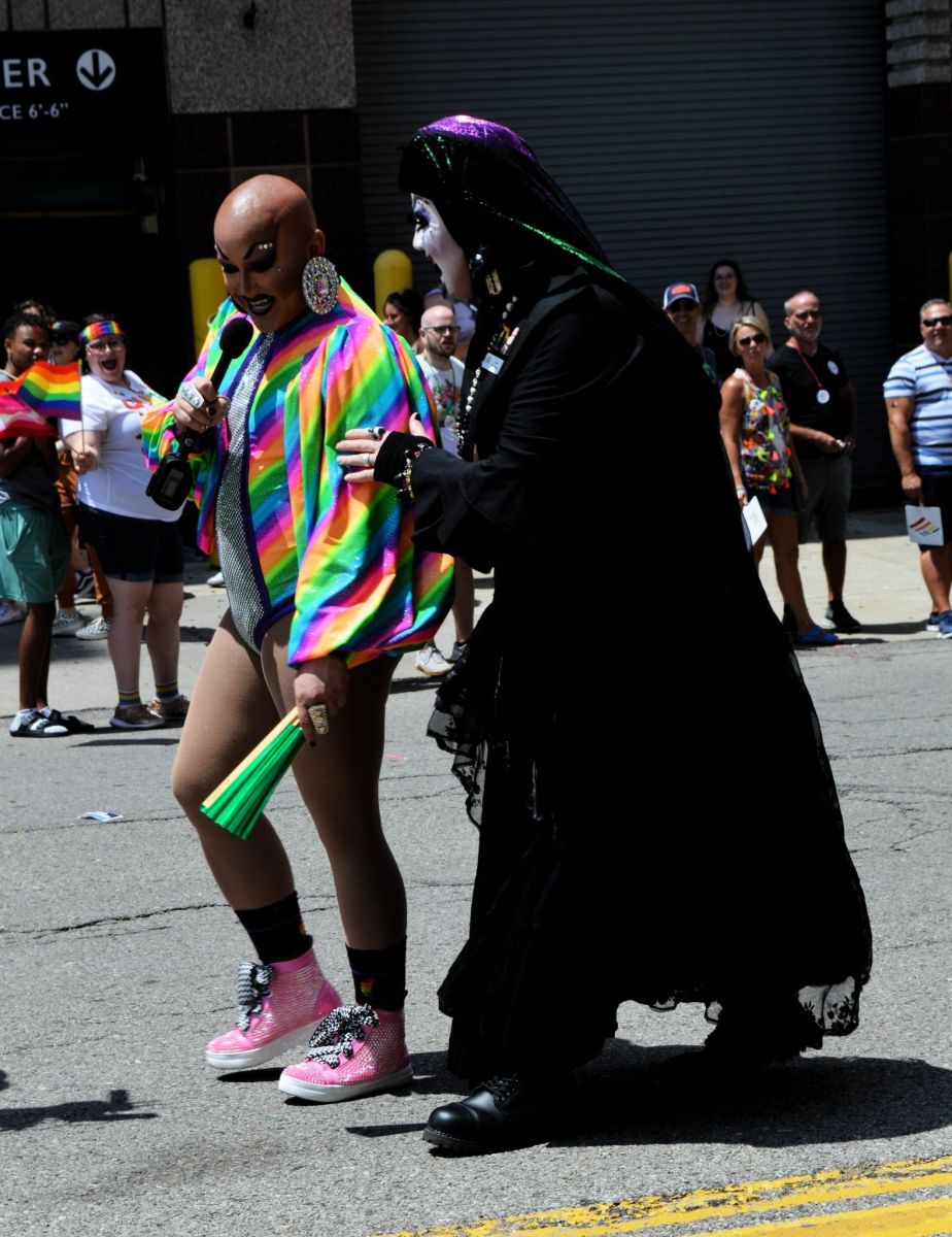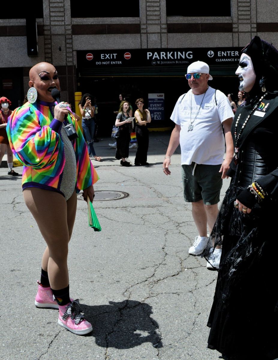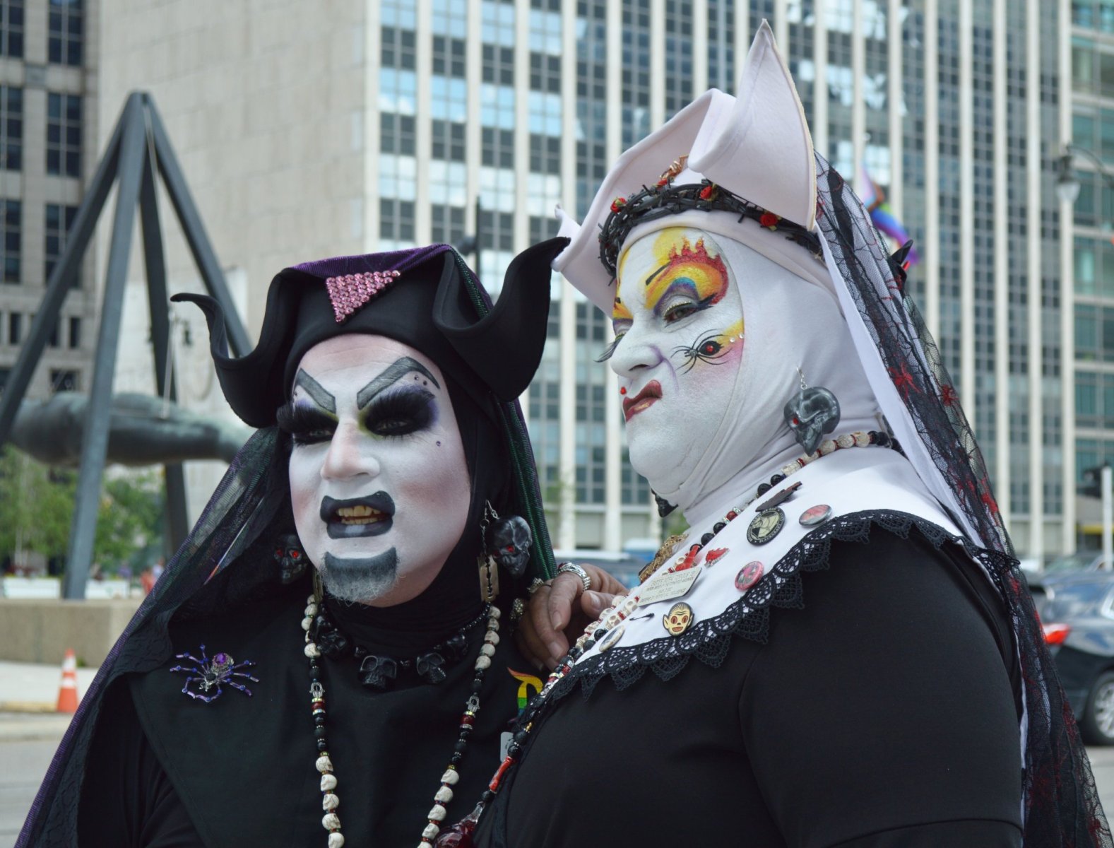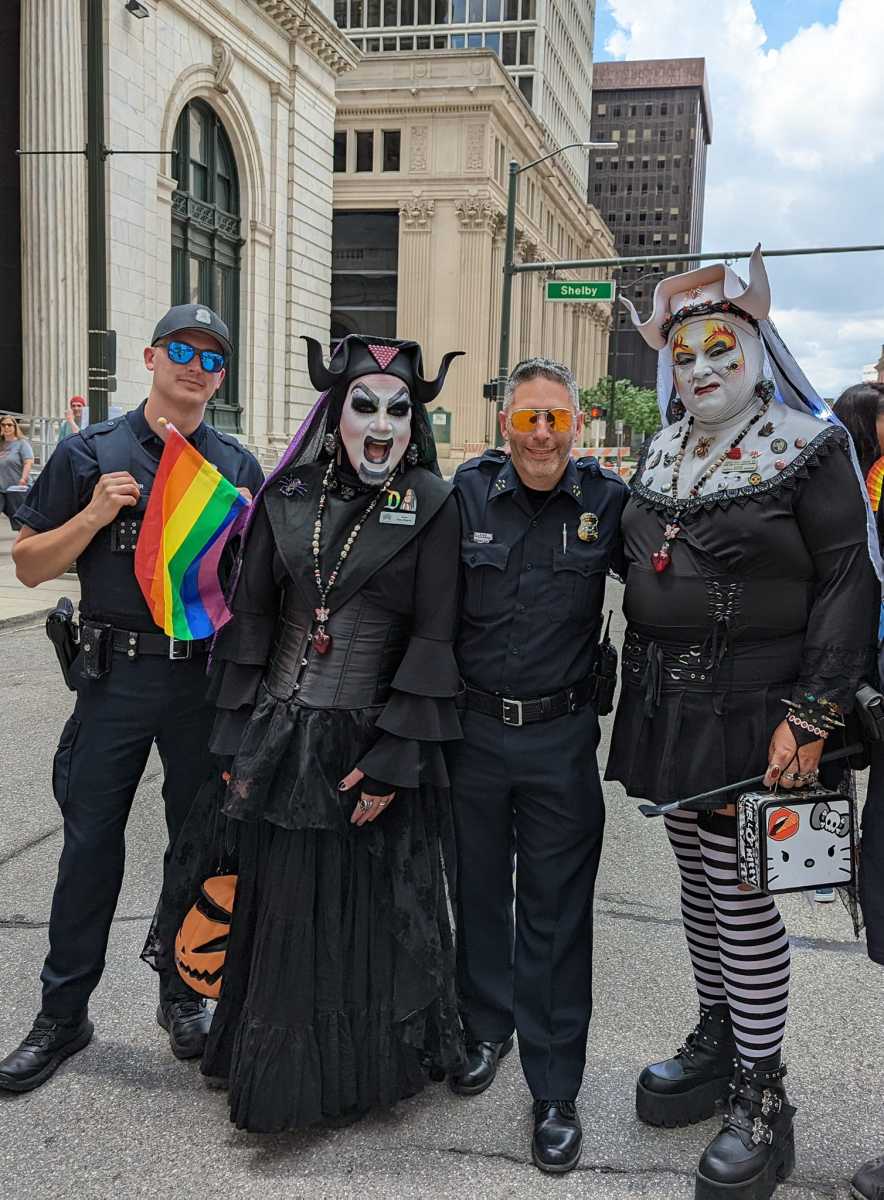 Sister Misty Meanor and Guard 2-Tone along with some visitors spreading joy and love at Motor City Pride 2022!